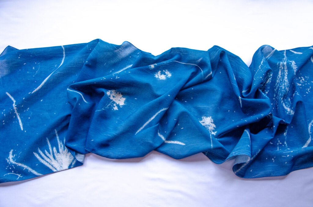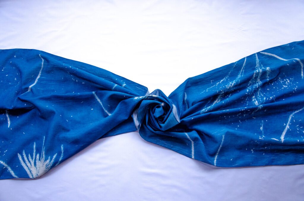 Disclaimer: Each scarf is sun-printed with objects and forms we hold close—reminders of stories, routines, and quiet joys. Lightweight, versatile, and crafted to be one of a kind—because individuality should never be replicated. The colors of the product you receive may vary slightly from what you see on your screen due to differences in lighting and display settings. Each cyanotype scarf is individually hand-printed, making every piece unique. Once a design is sold out, an identical one may not be available again.