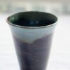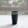 This is a one-of-a-kind marbled vase made by combining volcanic black and ivory white clay to give it a unique marbled texture. It is decorated on the inside with ocean green and sky blue glaze. The sky blue glaze merges with the ocean green and creates a unique color pattern, which is partly by chance and partly by design.