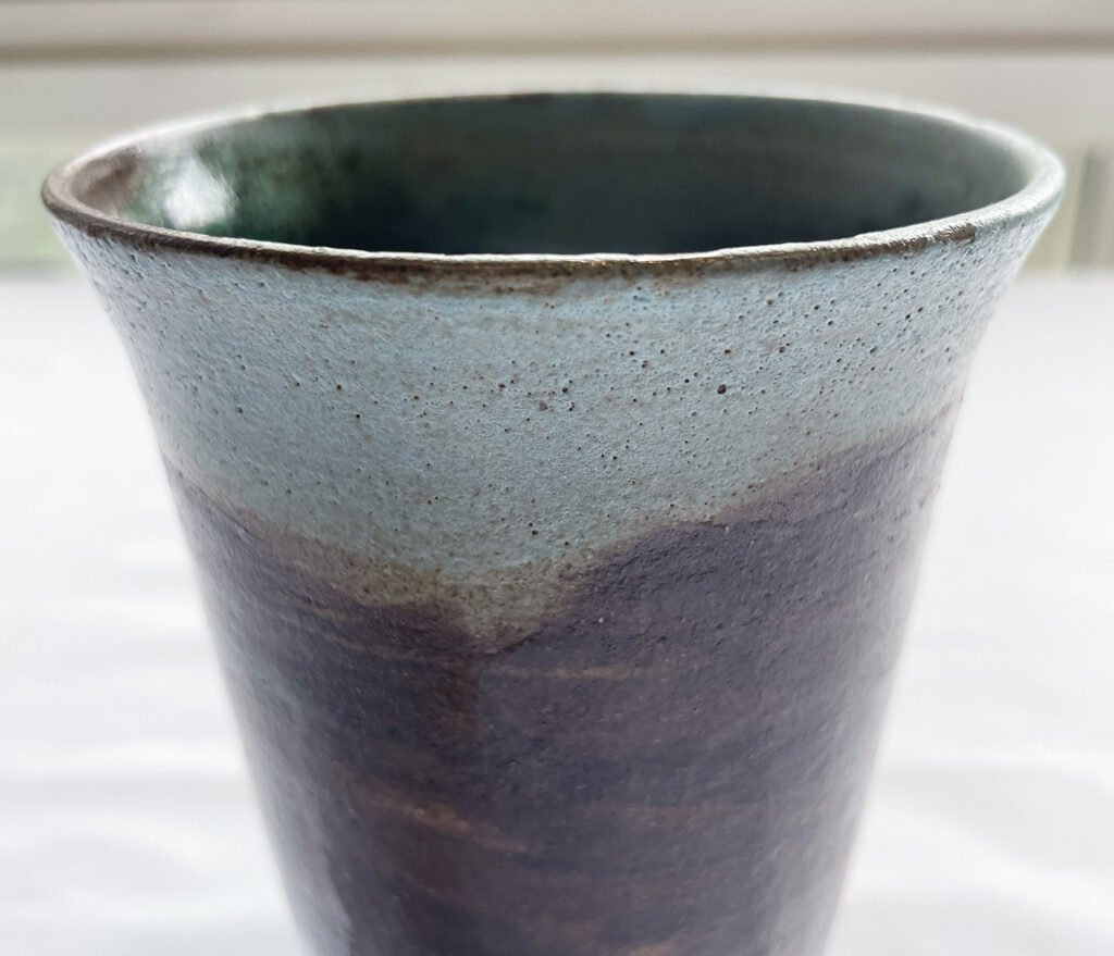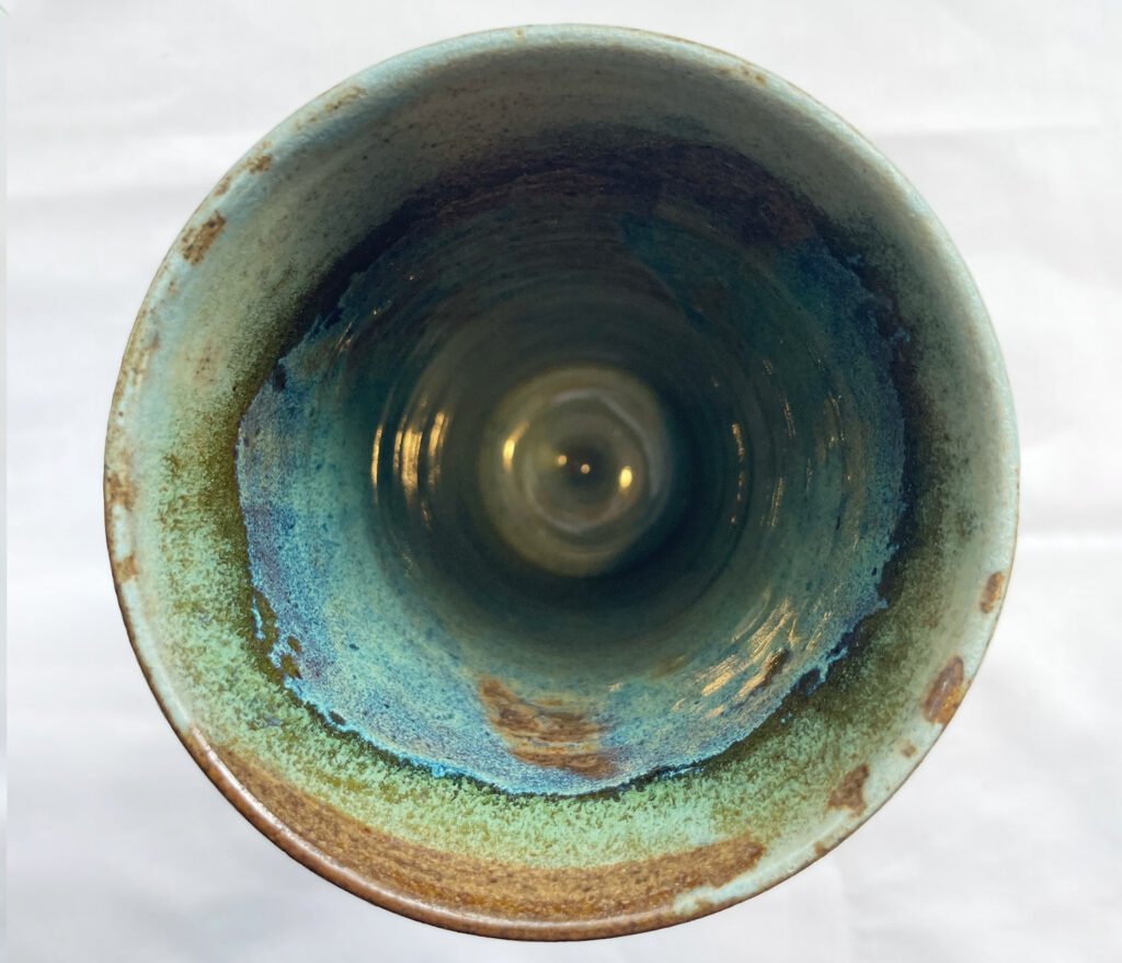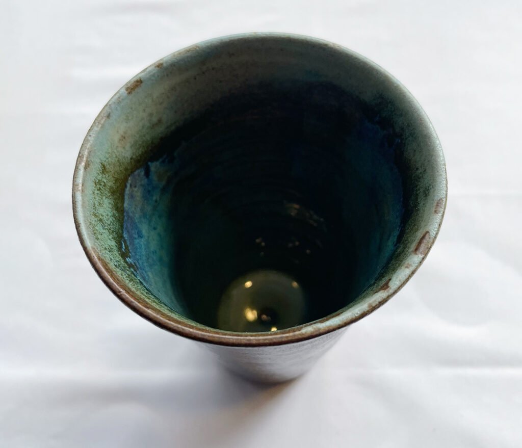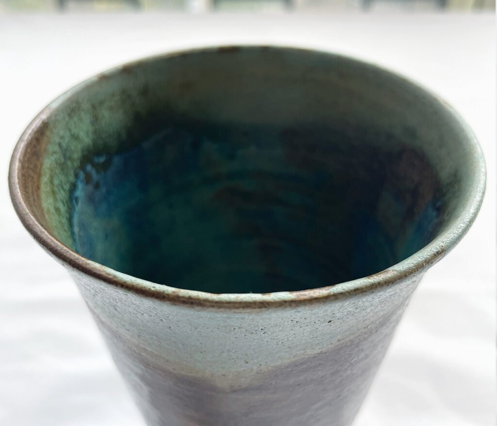 Glaze – blending of ocean green and sky blue on the inside and the outside top rim, and transparent glaze on the outside body
