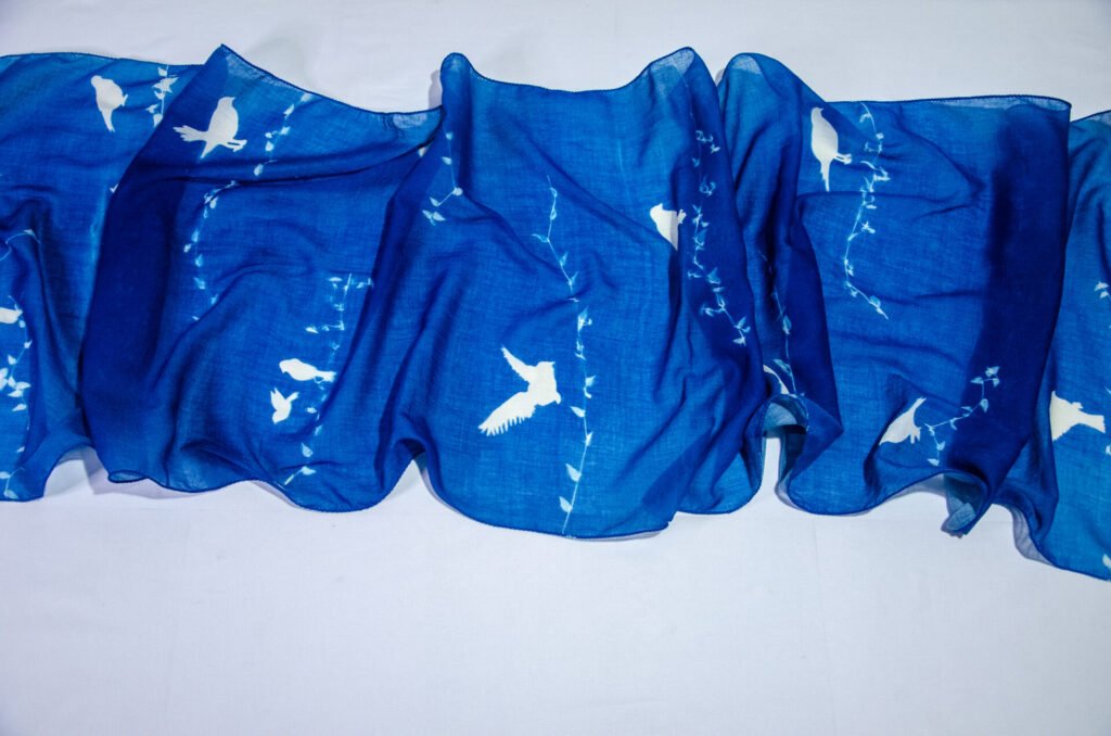 Disclaimer: Each scarf is sun-printed with objects and forms we hold close—reminders of stories, routines, and quiet joys. Lightweight, versatile, and crafted to be one of a kind—because individuality should never be replicated. The colors of the product you receive may vary slightly from what you see on your screen due to differences in lighting and display settings. Each cyanotype scarf is individually hand-printed, making every piece unique. Once a design is sold out, an identical one may not be available again.