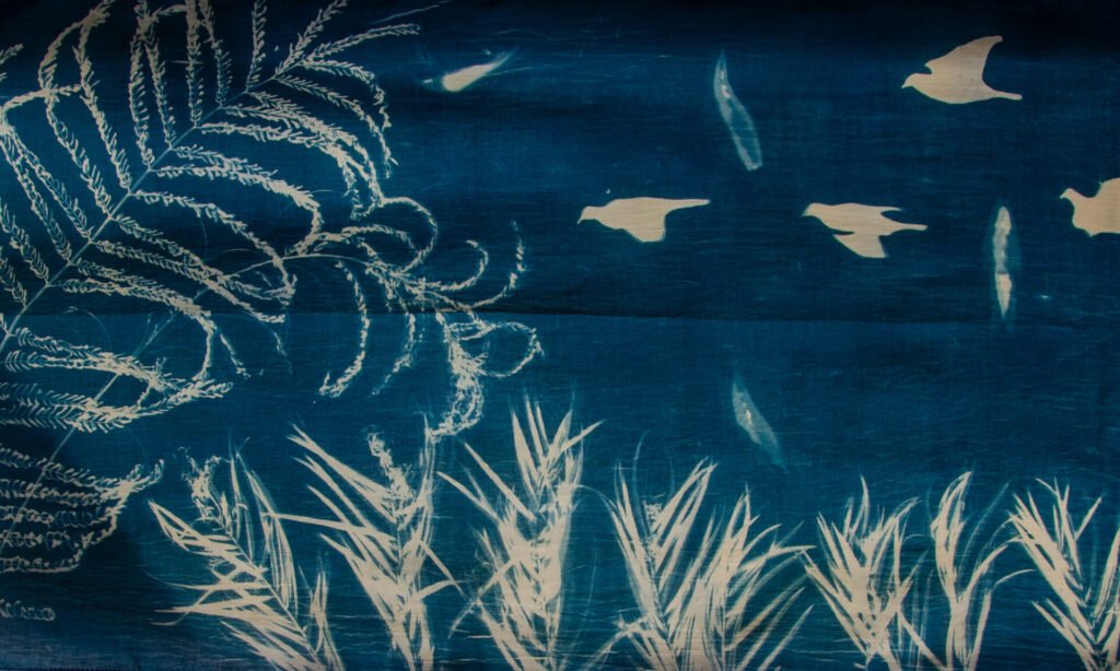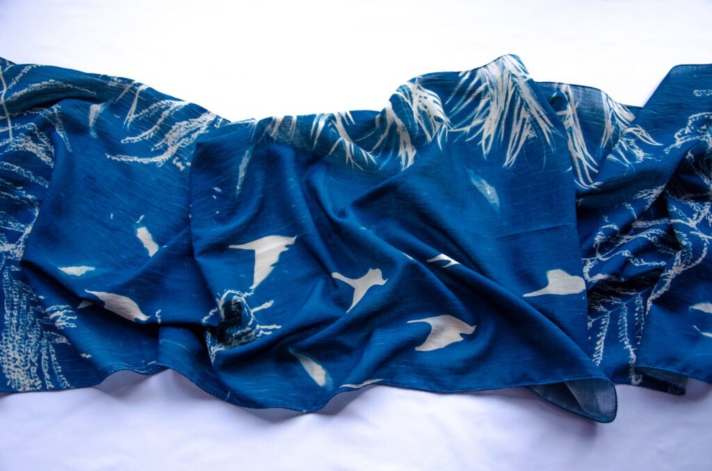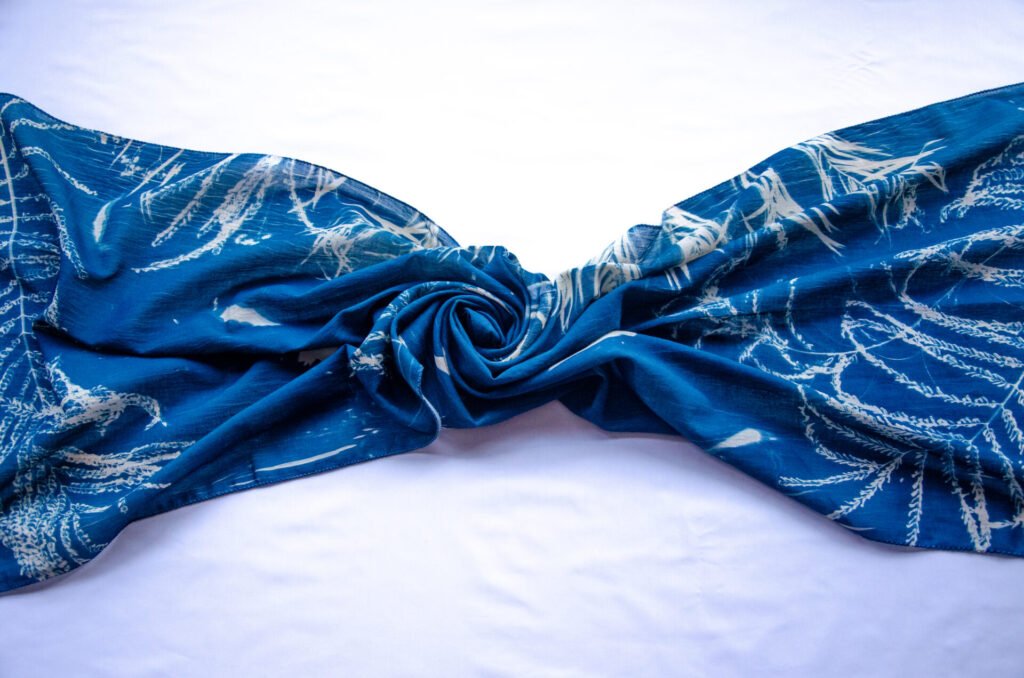 Disclaimer: Each scarf is sun-printed with objects and forms we hold close—reminders of stories, routines, and quiet joys. Lightweight, versatile, and crafted to be one of a kind—because individuality should never be replicated. The colors of the product you receive may vary slightly from what you see on your screen due to differences in lighting and display settings. Each cyanotype scarf is individually hand-printed, making every piece unique. Once a design is sold out, an identical one may not be available again.