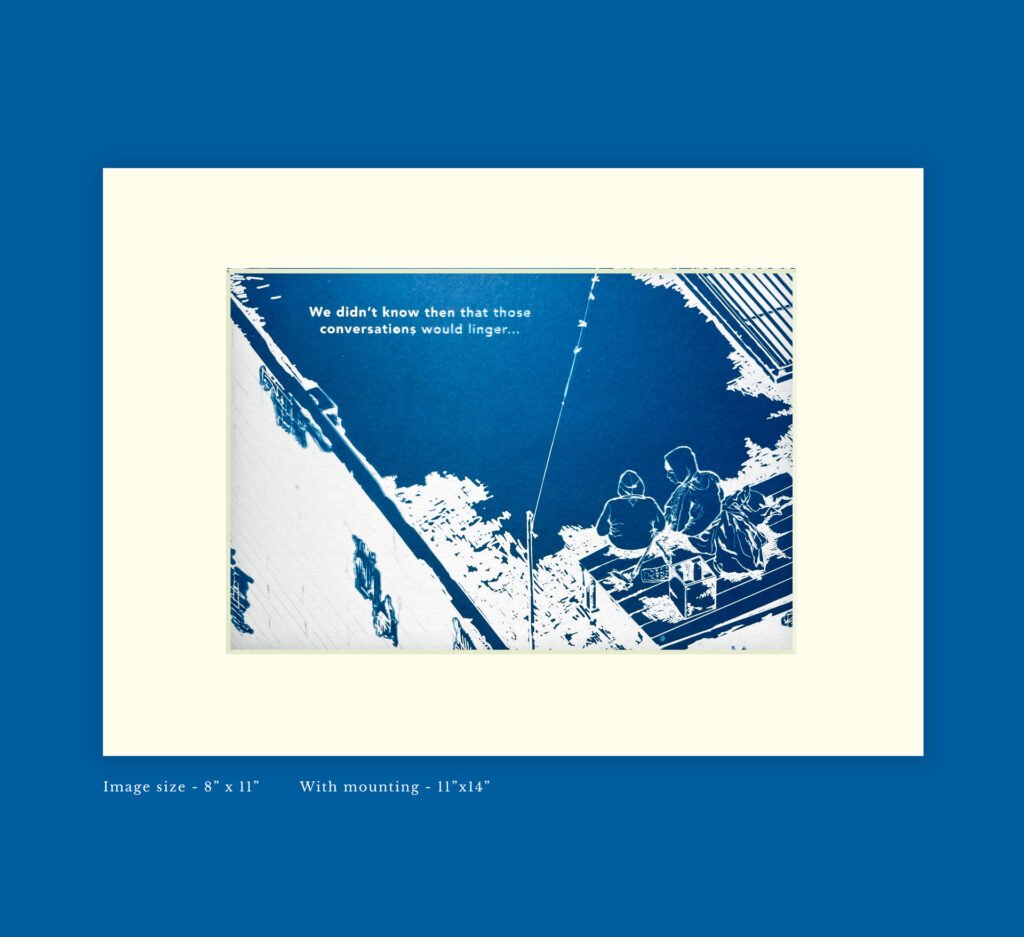The terrace series of prints draws from the everyday magic of Indian rooftops — places that held our boredom, our secrets, our crushes, our experiments with sky-gazing, and often, ourselves. Each print begins with a photograph that is converted into an illustration, painstakingly tracing out the highlights and shadows to ensure the cyanotype print comes out crisp and pristine, creating new memories of the bygone days.